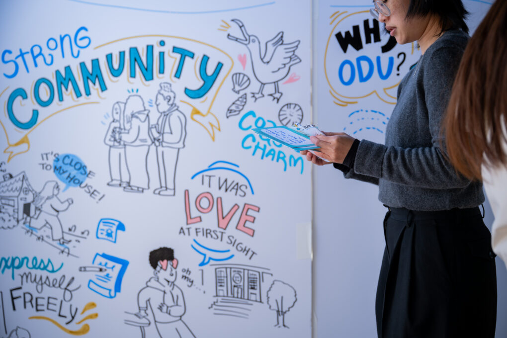 Using live graphic recording for a higher education campus activation, ImageThink helped ODU spark strong on-site participation and create a visual asset the admissions team continued using after the event.
