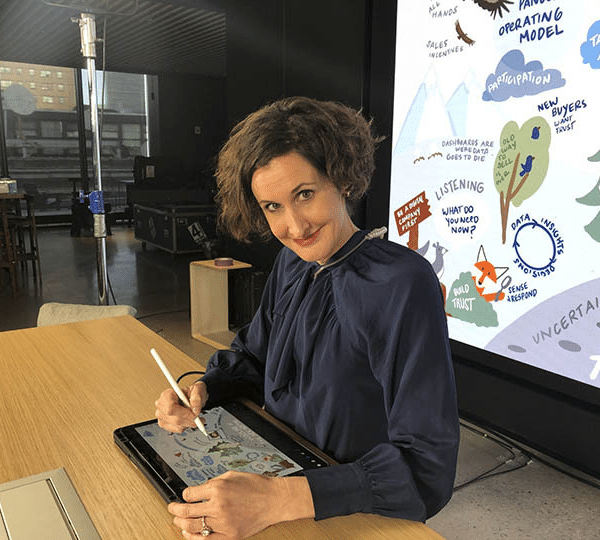 Sam Horvath: So, I want to talk to you about how visuals, visualization and graphic recording plugs into that because I don’t think it’s the first thing most people think of.