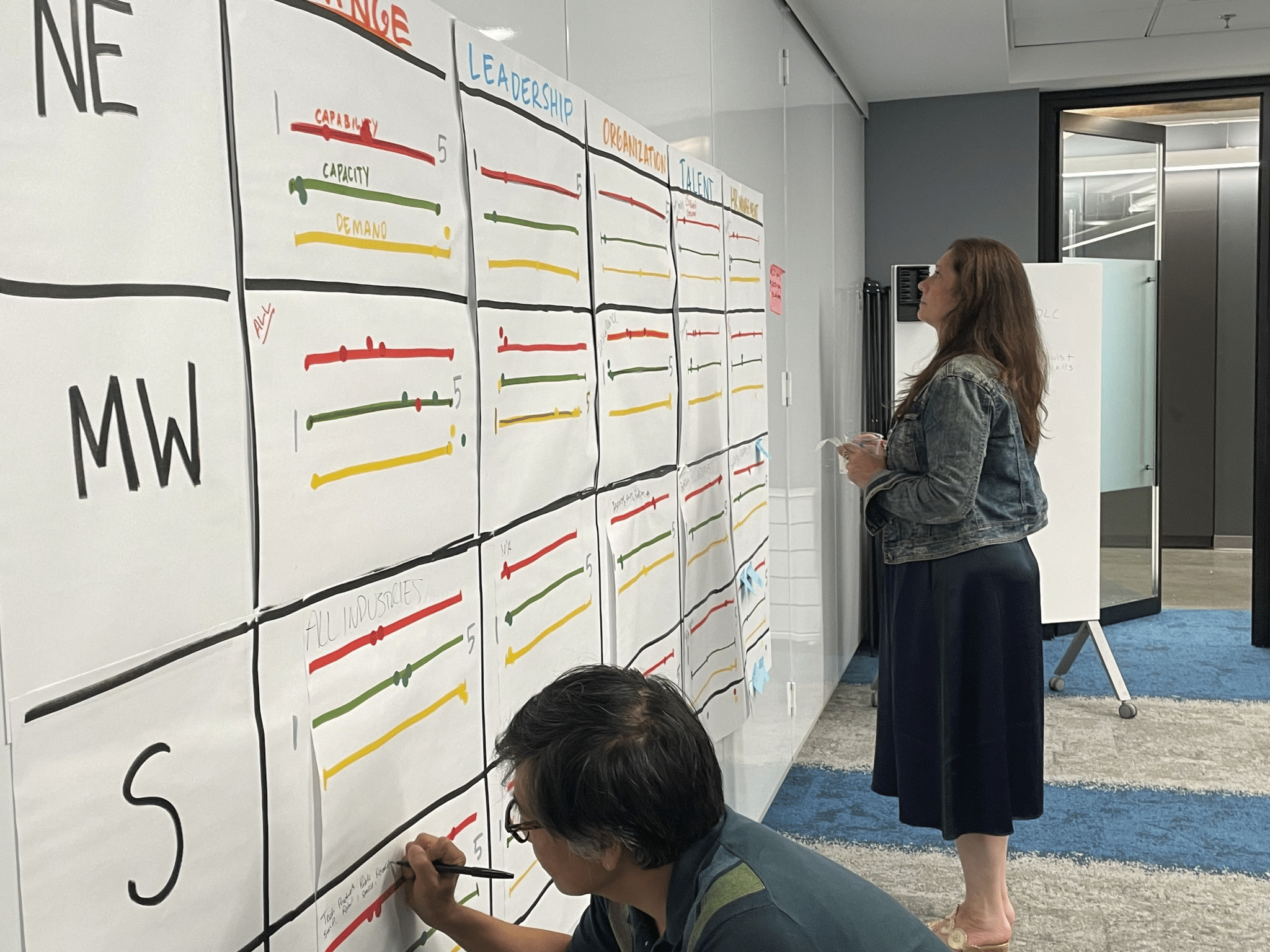 You’re not trying to write down everything said. Focus on key decisions, priorities, dependencies, and open questions. Our visual strategists distill conversations into their essence. This is a skill we’ve honed over thousands of sessions—knowing what to capture and what to let go.
