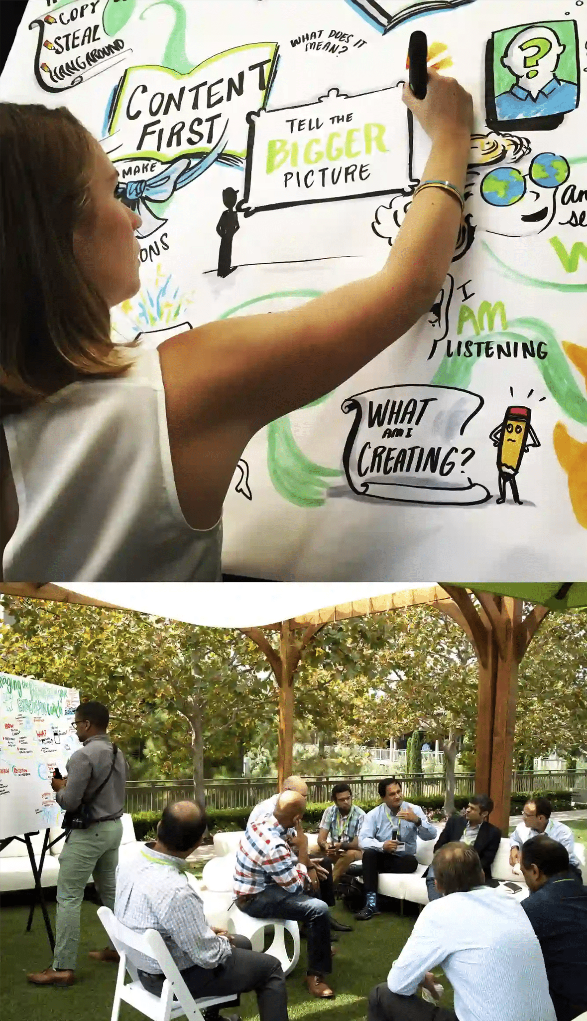 This is where The ImageThink Method™ really shines. As pioneers of graphic recording since 2009, we’ve developed a proven approach that goes beyond simple documentation. Our visual strategists facilitate thinking in real time, helping teams work through complexity and build visual roadmaps that drive action. We’ve done this with companies for product companies like Google, LinkedIn, AirBnB, —organizations that depend on clarity when the stakes are high.